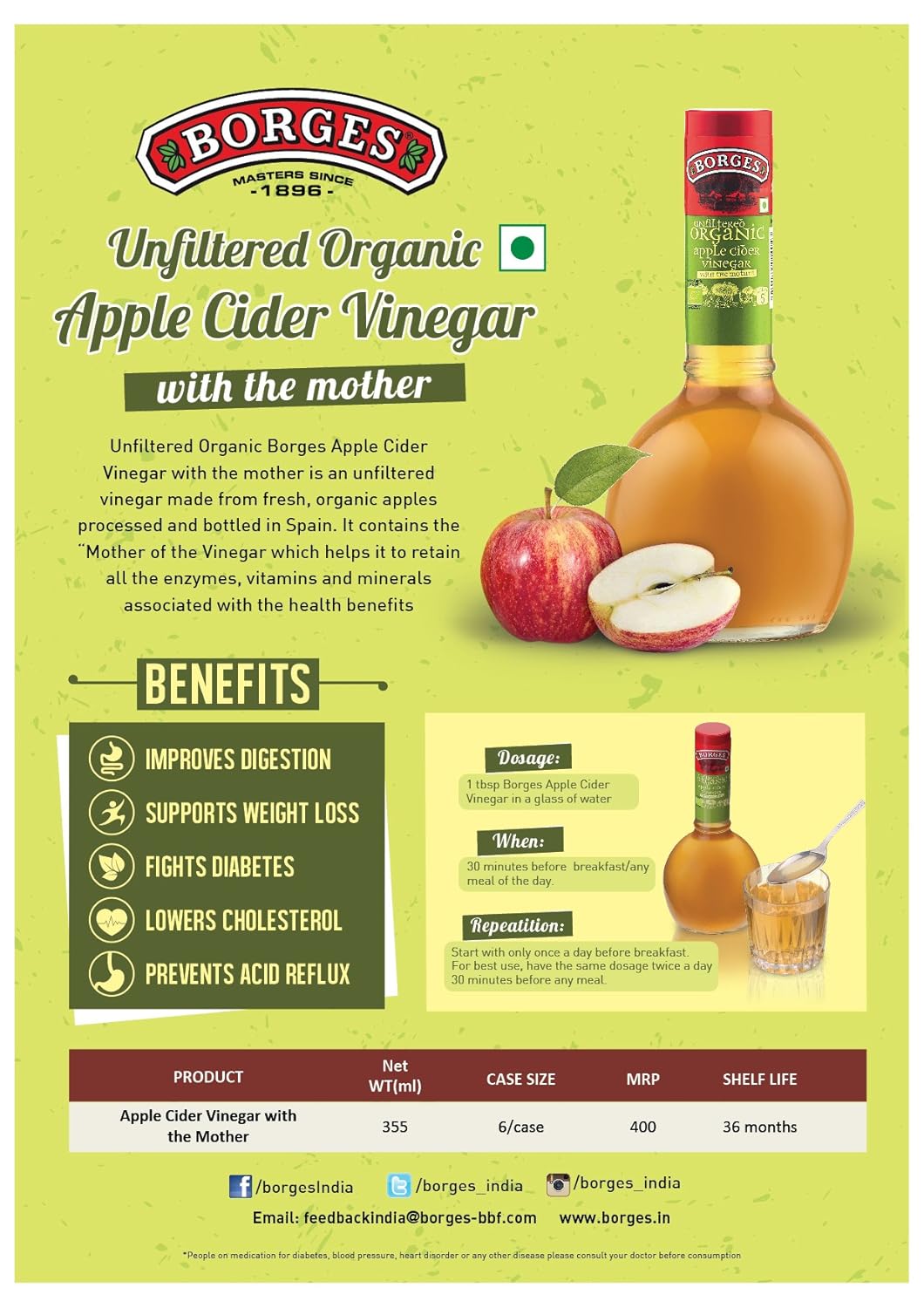 Buy Borges Unfiltered Organic Apple Cider Vinegar With Mother