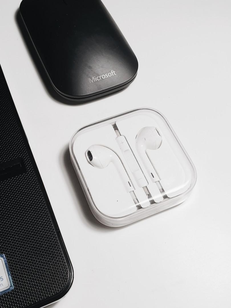 White Apple Earpods Beside Black Leather Case Photo Free Black