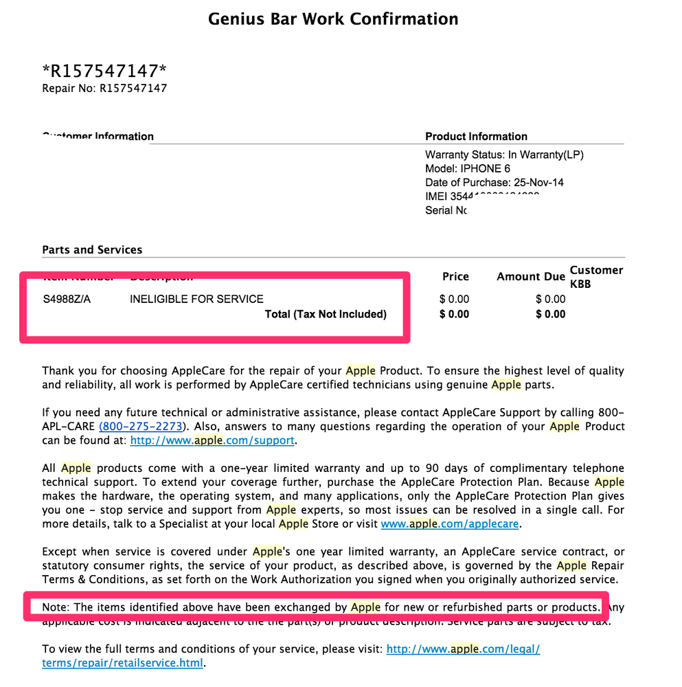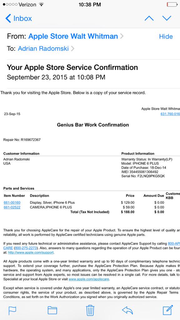 From the date on which you receive the loaner phone through the return date title to the loaner phone shall at all times remain vested in apple. If you visit an apple store in person be sure to ask for a card from any apple genius you speak with and save those genius bar work authorization service confirmation forms.