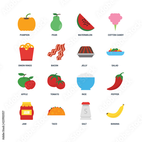 Set Of 16 Icons Such As Banana Salt Taco Jam Pepper Pumpkin