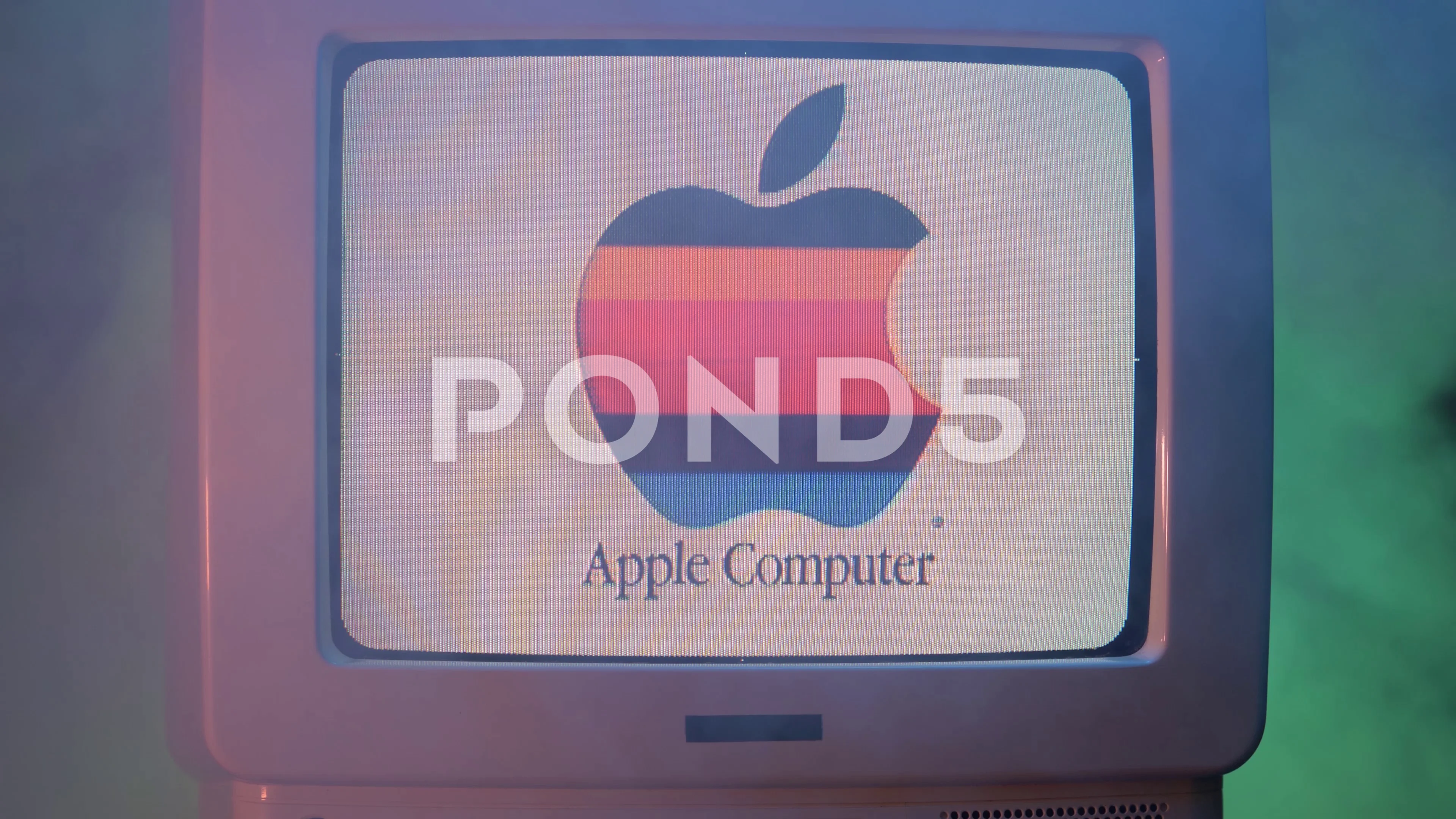 Vintage Apple Mac Computer Logo On Old Crt Screen 90s Hi Res