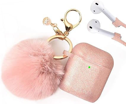 Airpods case filoto airpods silicone glitter cute case cover with pompomkeychainstrap for apple airpods 21 2019 newest 3600 protective air pods charging case cover rose gold 47 out of 5 stars 7837.